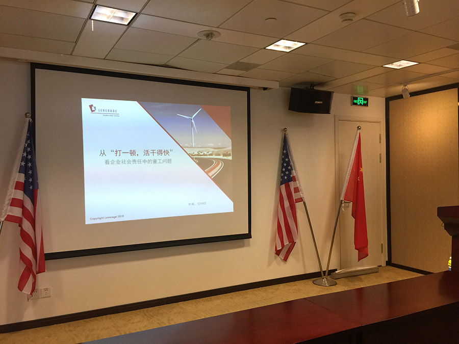 2016年12月9日星期五下午,由Leverage主办的“童工与企业社会责任”研讨会在上海金茂大厦成功举办。本次研讨会由中云资产提供场地,会议邀请到了上海智问管理咨询有限公司总经理李阳、华中科技大学法学院李杭和陆佳、欧萨评估总经理王小兵、SEDEX ERIC JIANG、Indochine International 总经理MR Harish Daswani 等30来位不同领域的相关利益方参加了活动,并纷纷发表了自己的看法和见解。