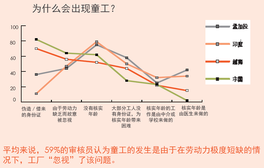 2.童工常在于工厂的“忽视”,劳动力的需求,成本的考虑,招聘程序的欠缺和能力不足;