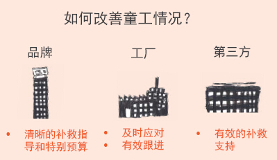 ● 协助NGO等社会力量,建立类似亲子培训等员工关怀项目,协助企业招聘,解决童工存在的主要原因;