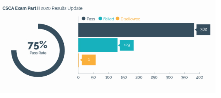 2020年共计完成512次Part 2考试,通过率为75%。详情请参照下图: