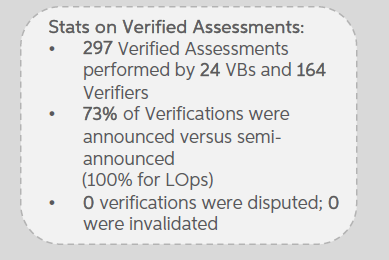 - 2019年164名来自24家ACTIVE机构的验证员共完成了297个验证,73%的验证是通知的,27%的是半通知。