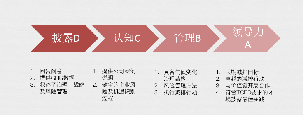 CDP 成立于2000 年、总部位于英国,致力于推动企业和政府减少温室气体排放,保护水和森林资源。每年都会要求世界上的大企业公开碳排放信息及为气候变化所采取措施的细节,已发展成为碳排放披露方法论和企业流程的经典标准。碳排放披露项目为全球市场提供了重要的气候变化数据,且其在线数据库是世界最大的企业温室气体(GHG) 排放和气候变化战略注册数据库。