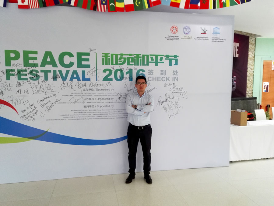 2016年9月21日“世界和平日”,Leverage受华东政法大学政治学研究院院长高奇琦邀请参加由中国人民对外友好协会、中国世界和平基金会、北京国际和平文化基金会主办,联合国教科文组织、驻华外交使团等相关机构和社会团体支持的第三届和苑和平节。本次和平节还特别邀请了国家领导人和重要嘉宾就国际社会聚焦的和平与安全、可持续发展、全球治理与社会责任、“一带一路”文明对话等话题与80多国参会代表进行分享互动,携手促进世界和平。