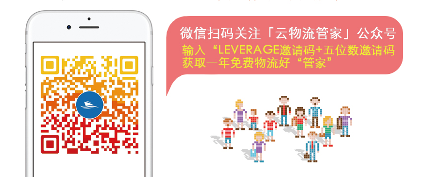 现购买Leverage的任何服务,便可免费使用1整年的“云物流管家”服务,请联系Leverage客服获取邀请码,并关注“云物流管家”公众号,输入“LEVERAGE邀请码+五位数邀请码”,您就获得了一个物流好“管家”。