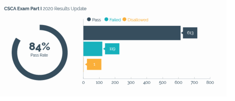 2020年共计完成733次Part 1考试,通过率为84%。详情请参照下图:
