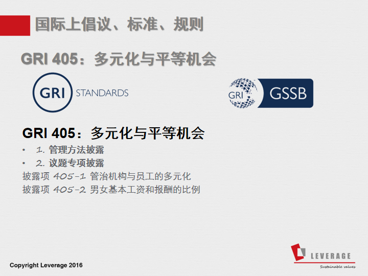 GRI作为全球最广泛使用的社会责任标准指引组织,里面的405多元化与平等机会,对于企业如何实现D&I给出了清晰的建议和良好实践,值得阅读与思考。